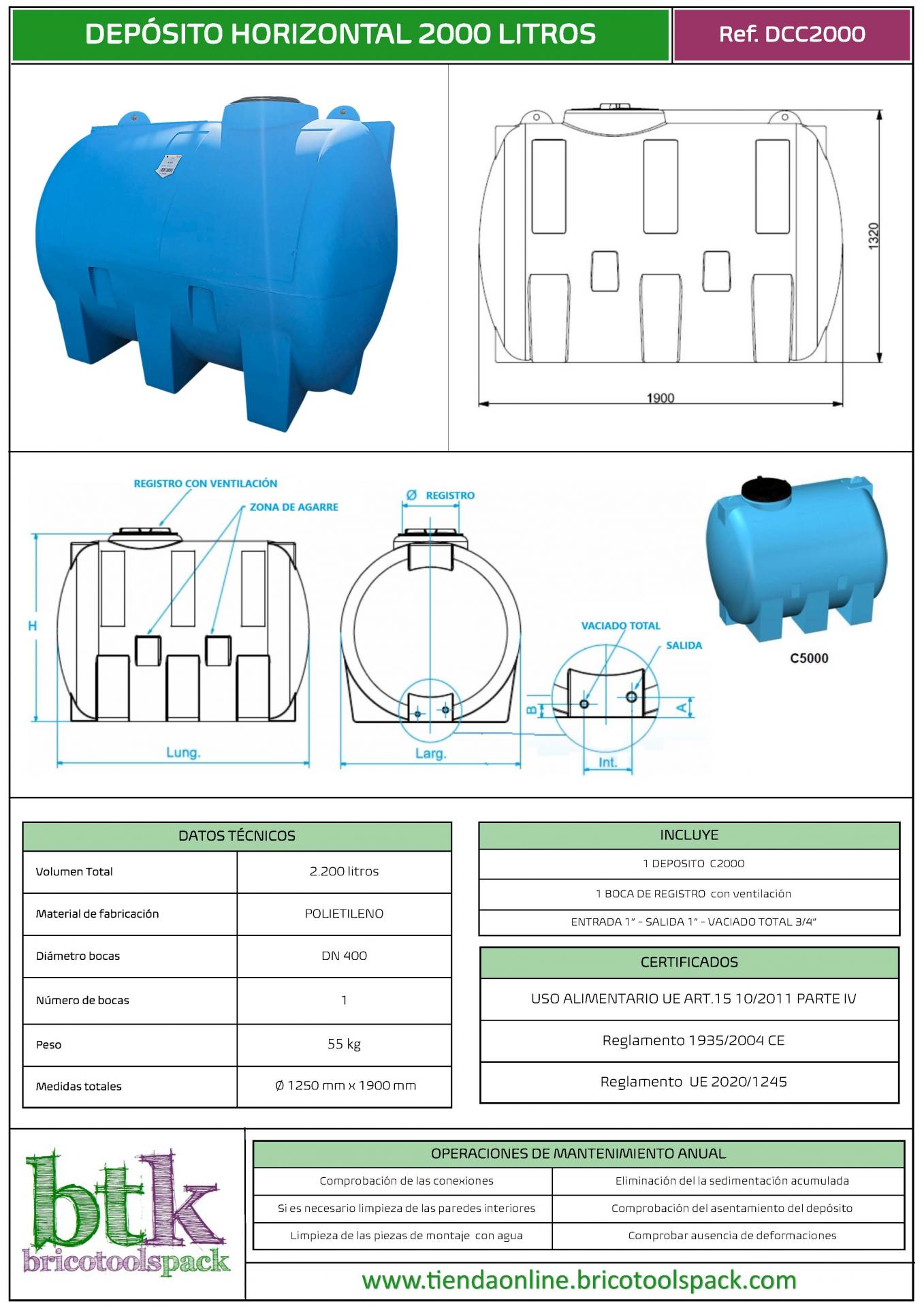 Características de: Depósito para agua de 2000 litros tipo cisterna