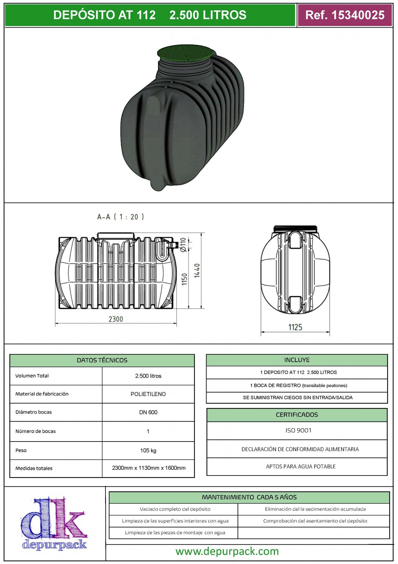 Características de: Depósito de 2500 litros AT 112 para enterrar